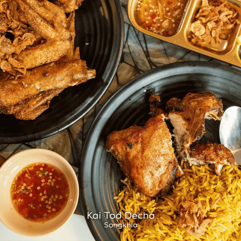 Impossible d’explorer la gastronomie de Songkhla sans goûter au célèbre Kai Thot Hat Yai, le poulet frit emblématique de la région.
